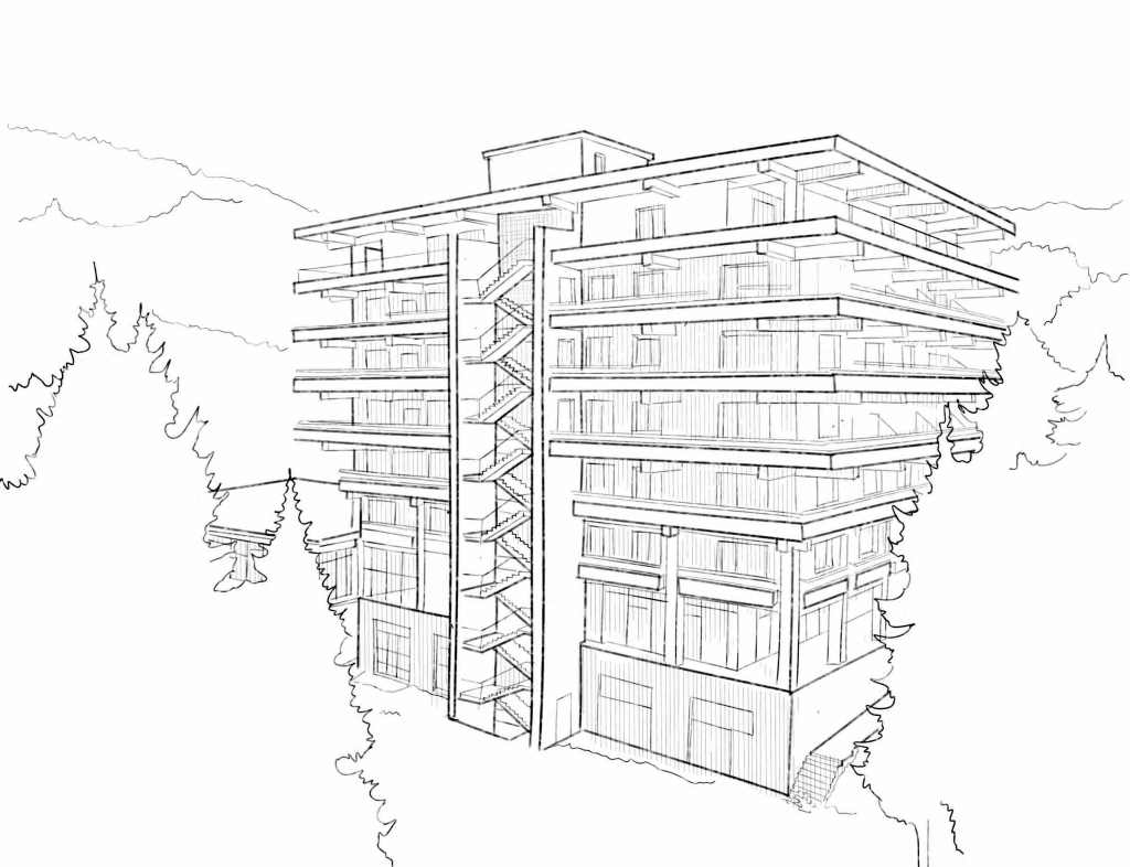 built 1982 retreat for the Composers’ Union; seven-story modernist complex with wraparound balconies and timber balustrades