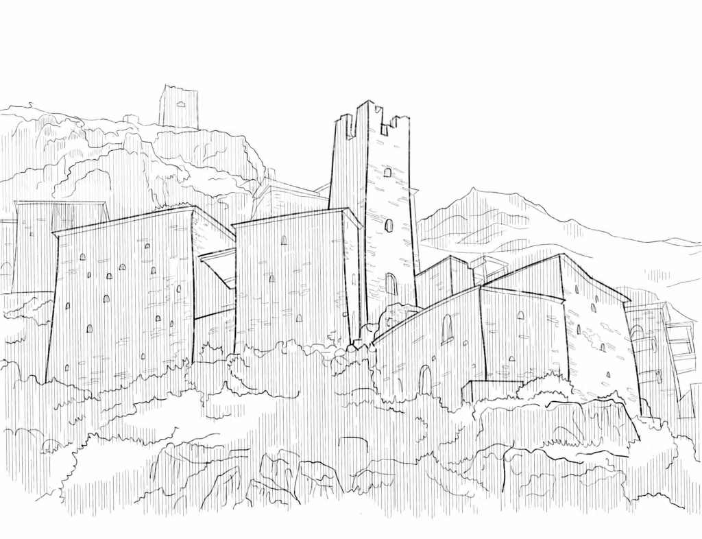 mountainous settlement inhabited since the 10th century; terraced cluster of dry-stone fortified dwellings and towers
