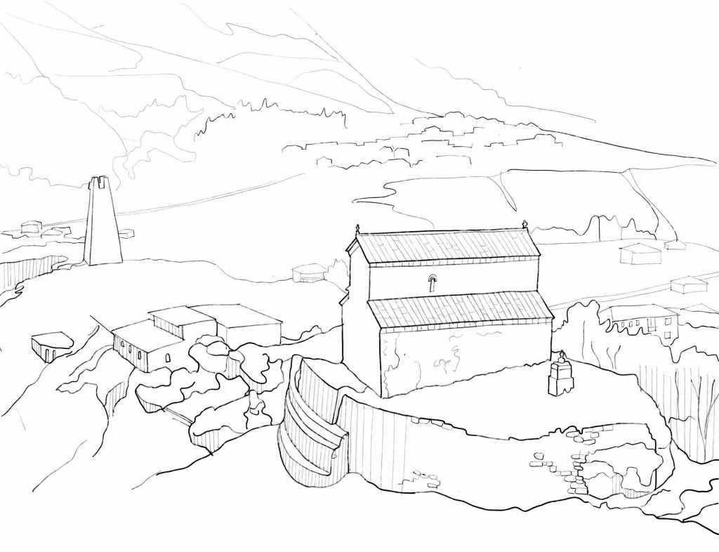 9th–10th-century basilica on a hill above the Georgian Military Road in Sioni village; original medieval stone altar partition