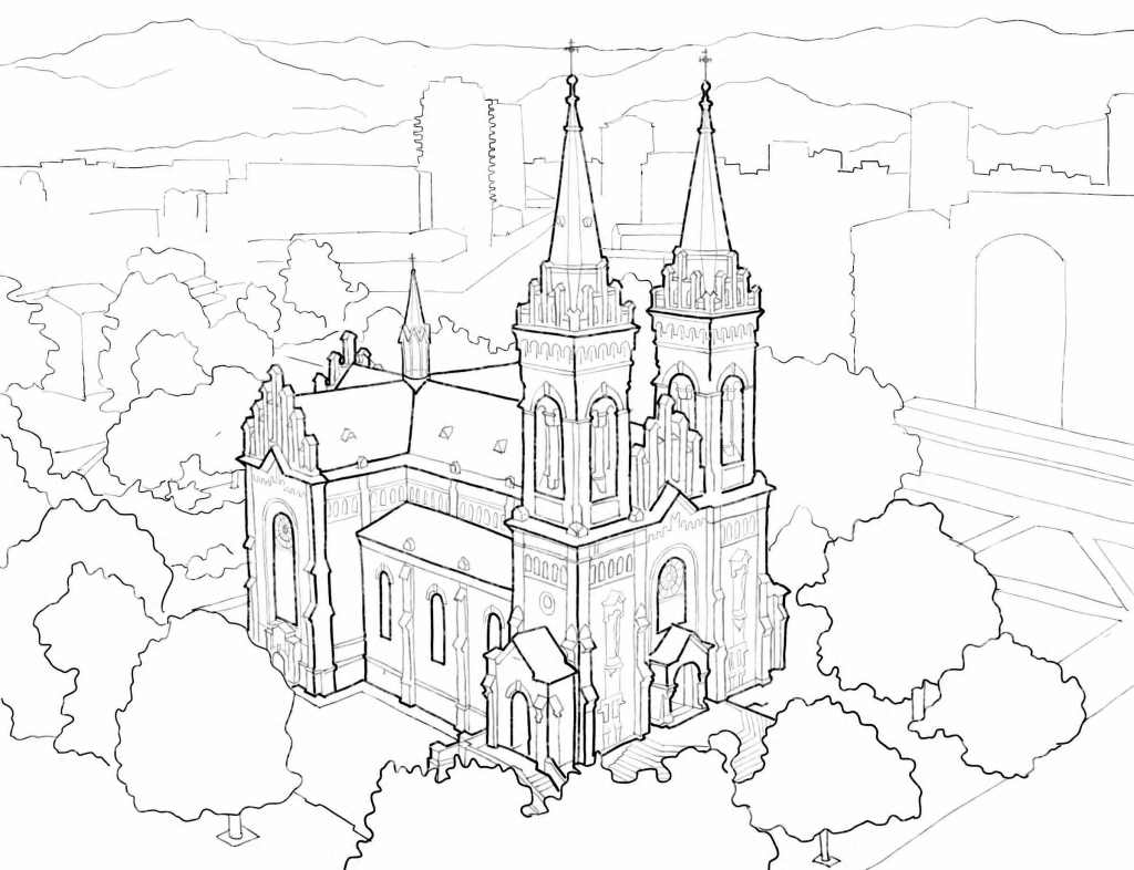built 1898–1903 by Aleksander Rogojski as a Gothic Revival Roman Catholic church; used as a high-voltage laboratory in the Soviet era