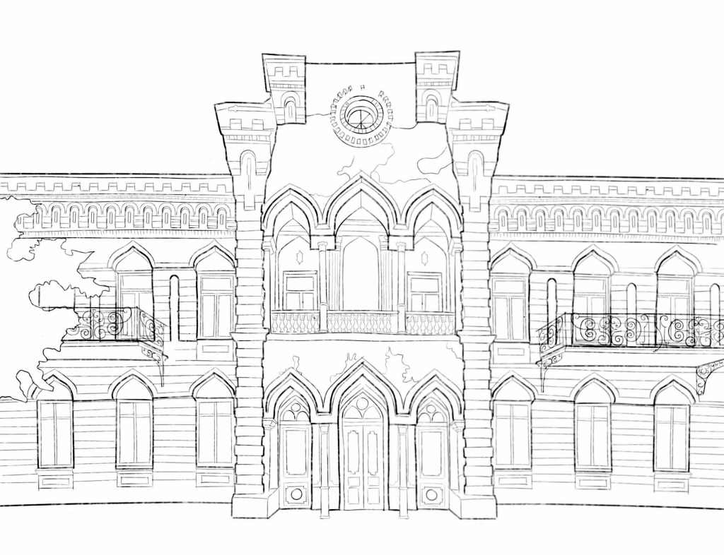 founded 1852 as the Caucasian Museum; present building 1913–1929, completed by Nikolai Severov; symmetrical facade with medieval Georgian motifs