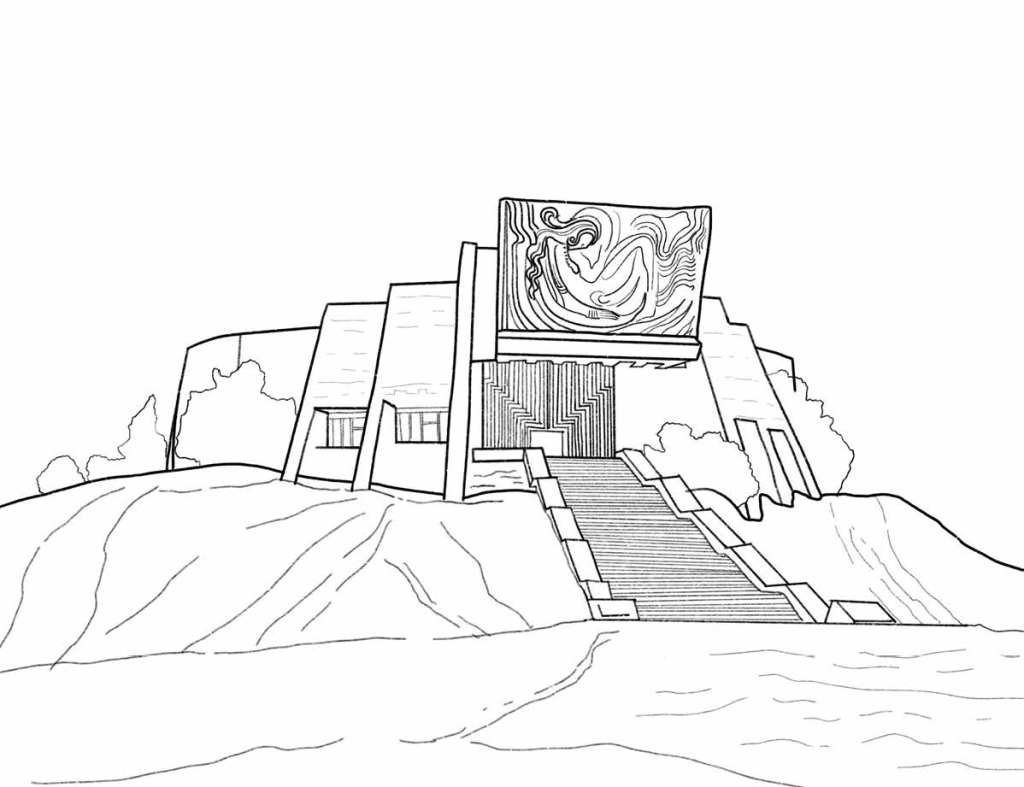 completed 1988 by Shota Kavlashvili and Shota Bostanashvili; modernist hilltop museum reusing a former water reservoir; now closed and abandoned