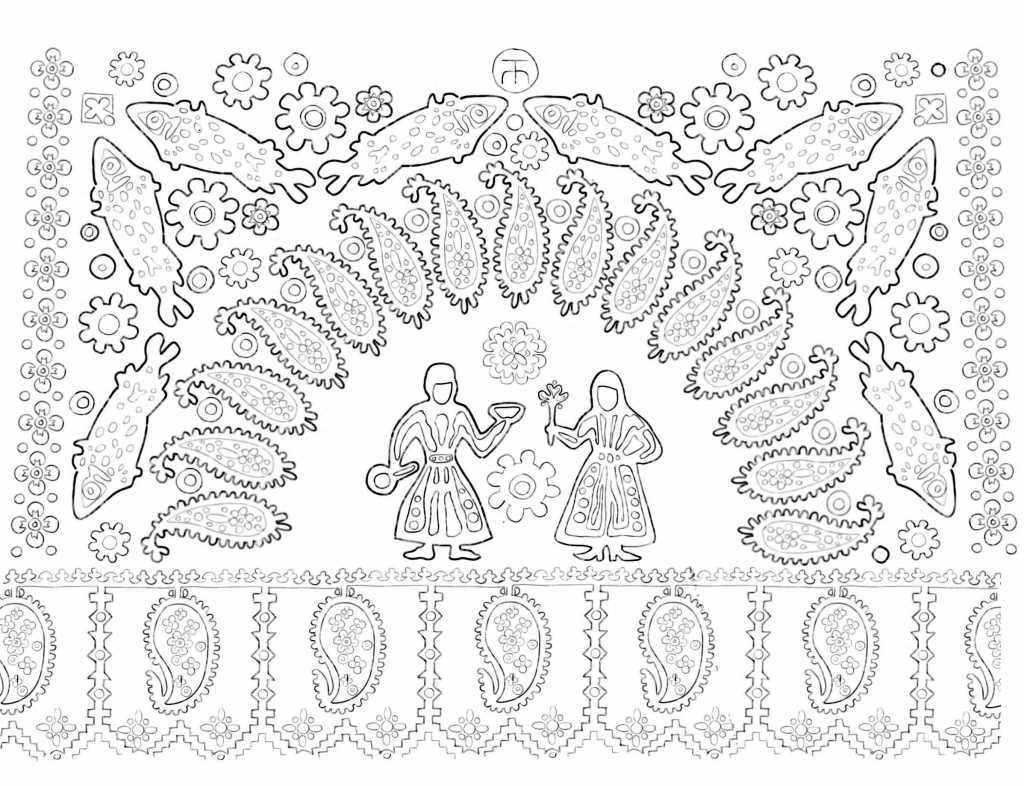 indigo blue block-printed tablecloths for feast days; earliest surviving examples date to the 18th–19th centuries