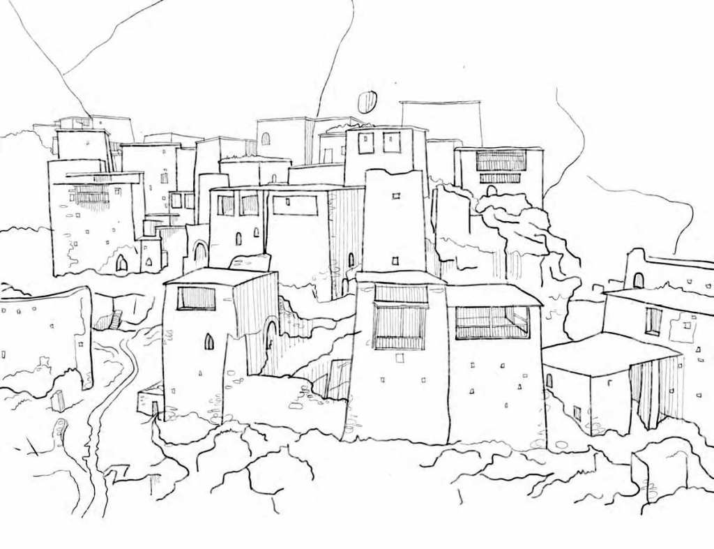 16th–18th-century fortified tower-house settlement on the Arghuni Gorge; terraced cluster of dry-stone dwellings uniting living, storage and defense