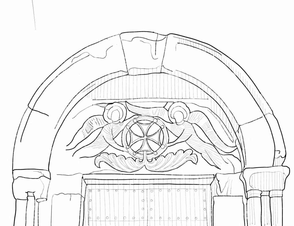 carved 586–630s; angels lift a medallion with a cross – a widespread motif in Georgian medieval art; above the south portal of Jvari Church