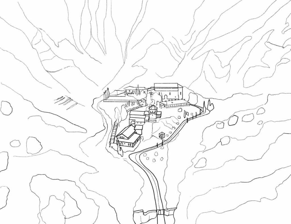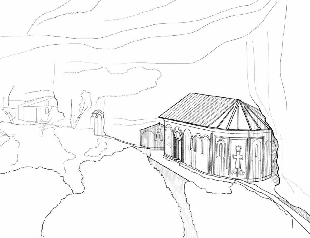 monastic complex with 6th-century St. John the Baptist church and rock-cut monastic cells; founded by St. Shio, one of the Thirteen Assyrian Fathers
