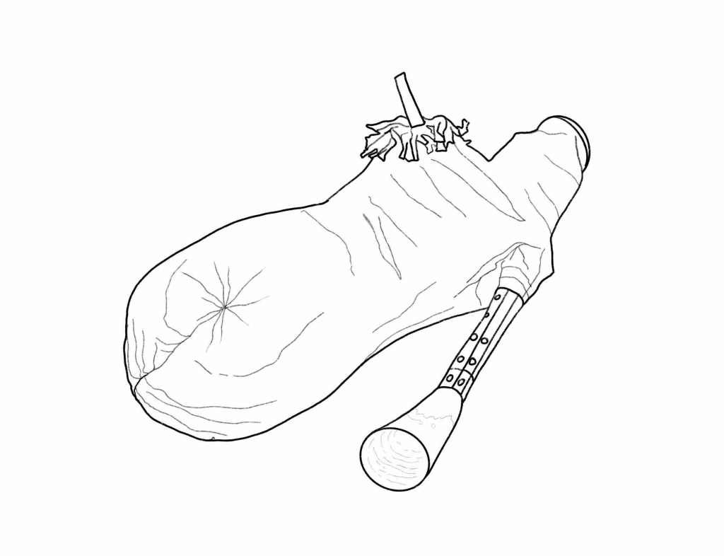 bagpipe with goat-skin bag, chanter and drone; played mainly in western Georgia