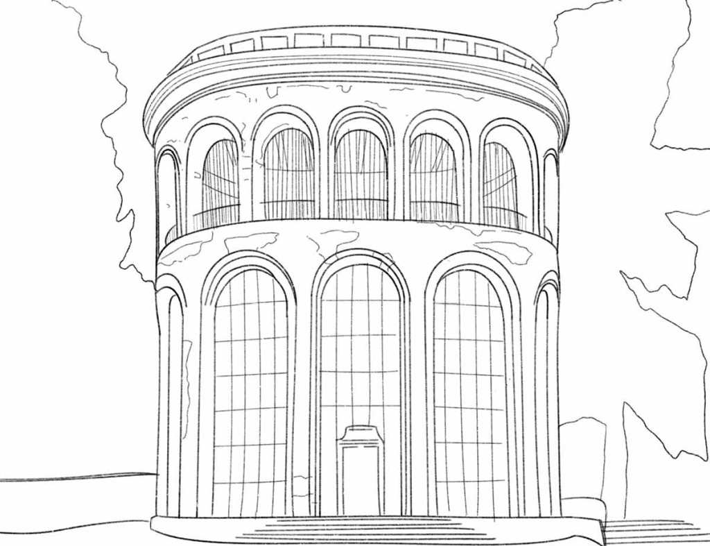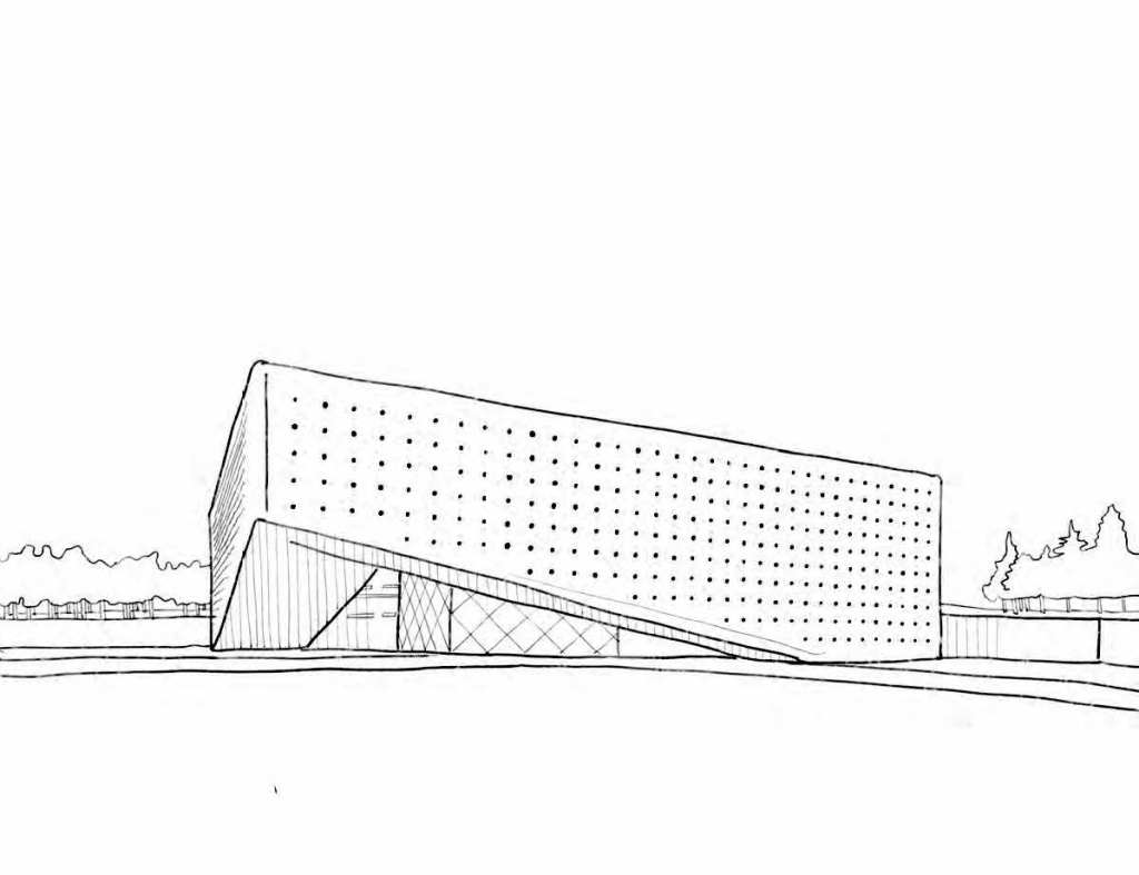 glass core within a surrounding concrete volume; completed 2012 by Tengiz Kvantaliani
