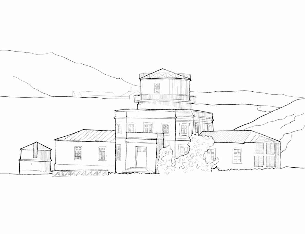 built 1860–1861 in Kukia by Otto Simonson; tower added 1882 by Leopold Bielfeld; now Hydrometeorology Institute and museum