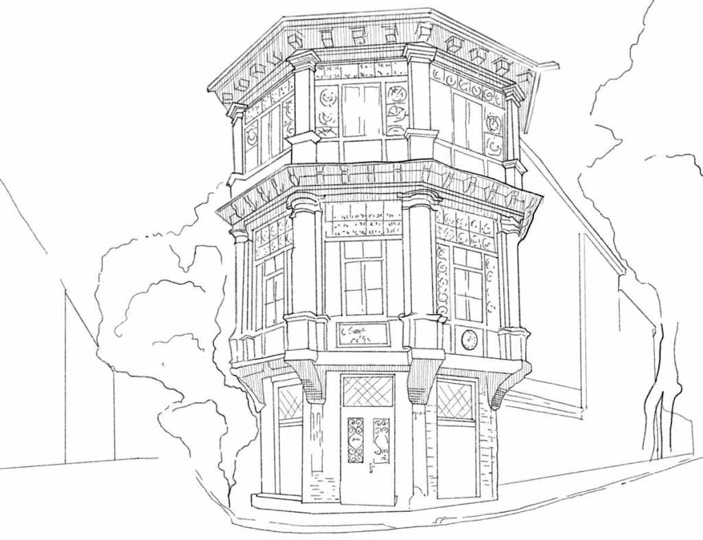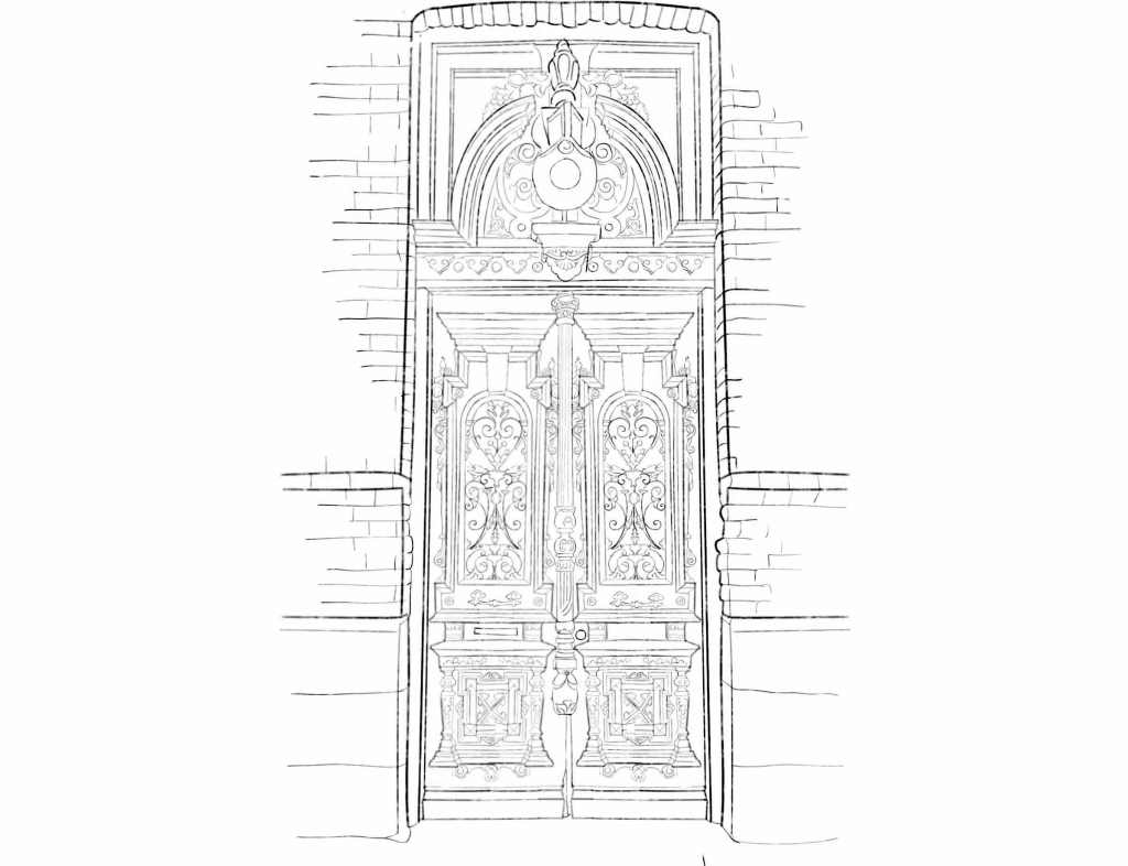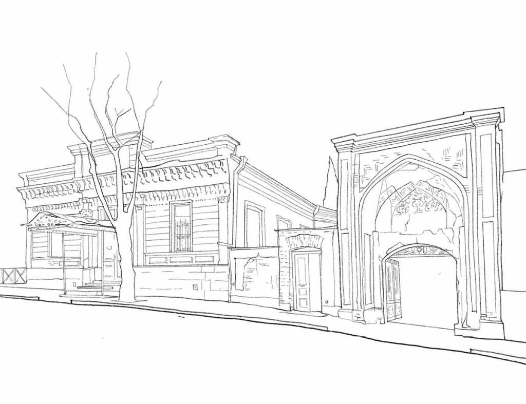 built 1880 by Aleksander Szymkiewicz; purchased in 1884 by Persian consul Mirza Reza Khan; remodeled in Oriental Revival with an arched gate