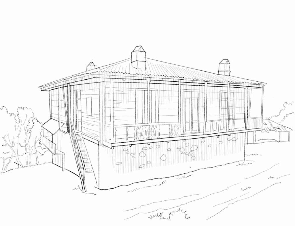 late 19th-century house with ground-floor space for about 30 head of cattle; relocated from Didachara, Adjara