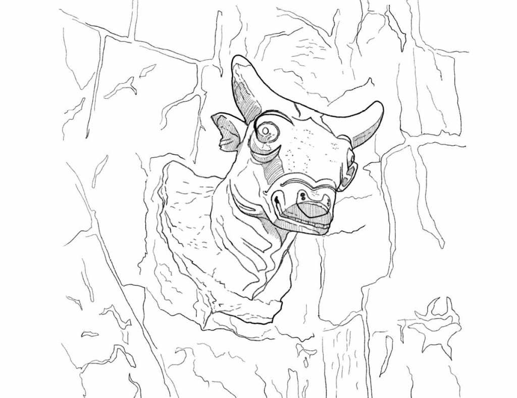 sculpted bull’s head on the 11th-century gate wall at Svetitskhoveli Cathedral
