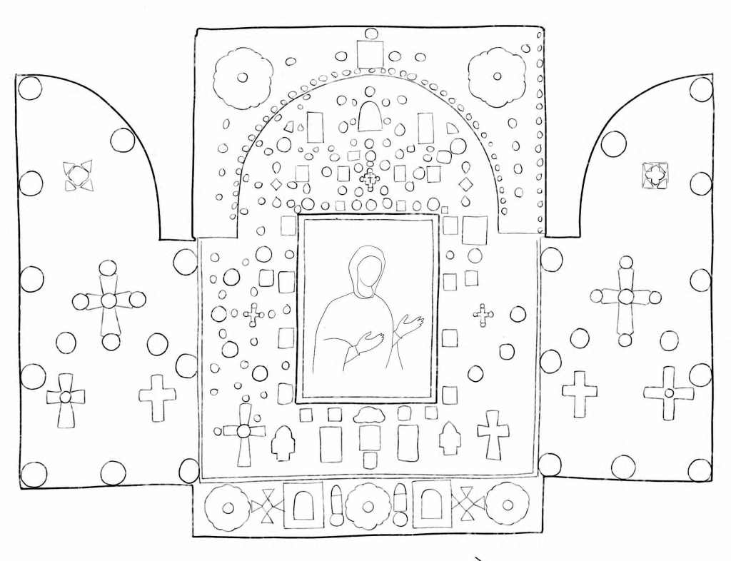 early 12th-century triptych case for a 10th-century Virgin icon; repoussé and 115 Georgian and Byzantine cloisonné enamels