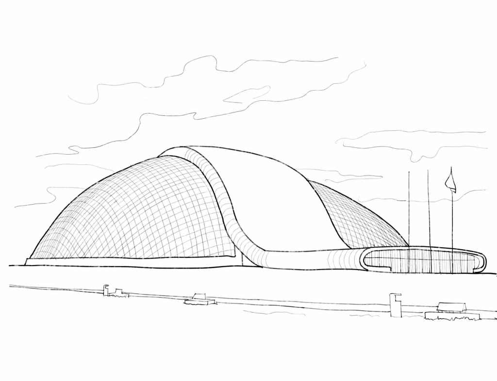sweeping concrete arch spanning a glass dome; completed 2012 by Alberto Domingo Cabo; former parliamentary seat 2012–2019