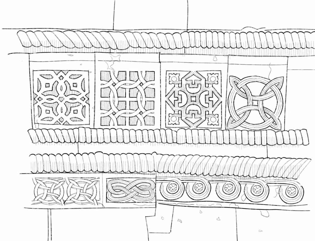 carved geometric and interlacing stone reliefs around the drum at Svetitskhoveli; likely 15th-century work