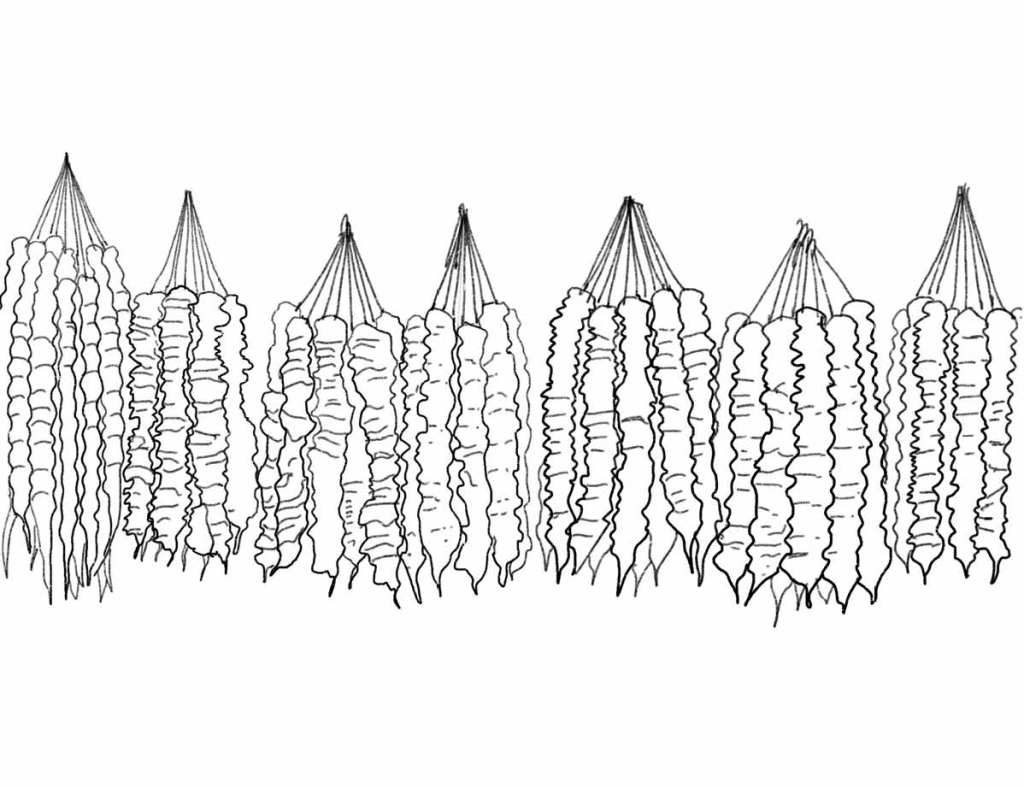 string of walnuts or hazelnuts dipped in thickened grape must; dried into a firm, candle-like sweet