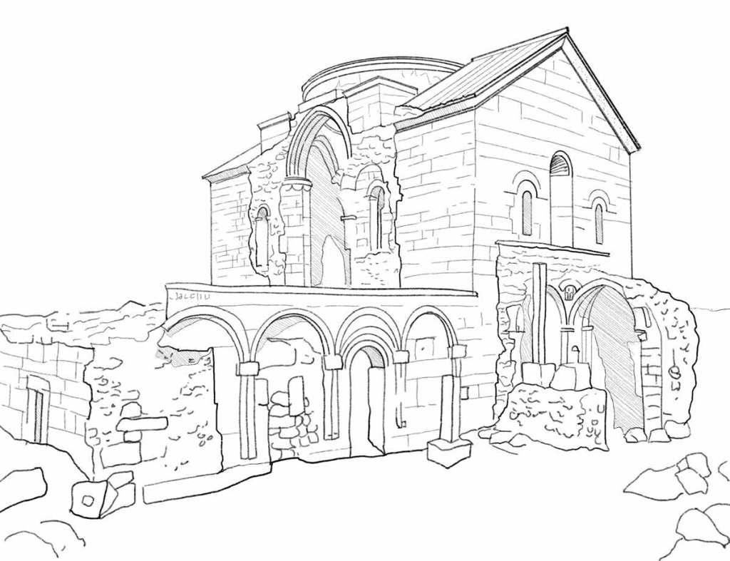 964 domed cross-in-square cathedral on the Javakheti Plateau; carved exterior decoration; now in ruins without the dome