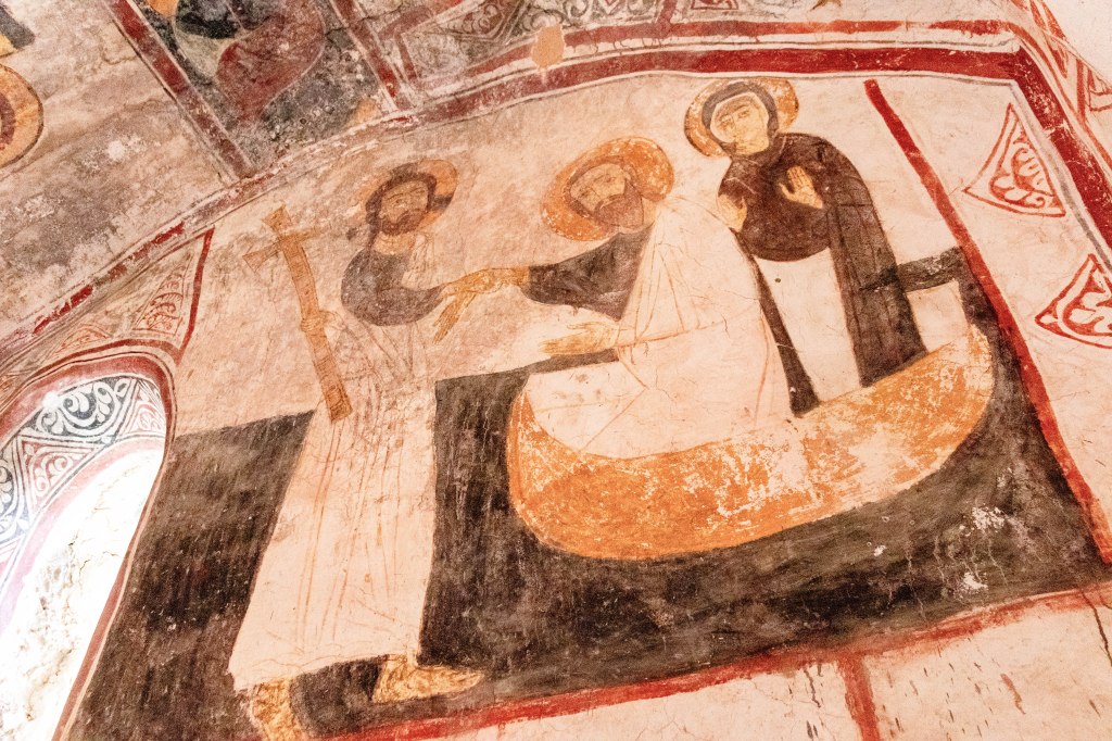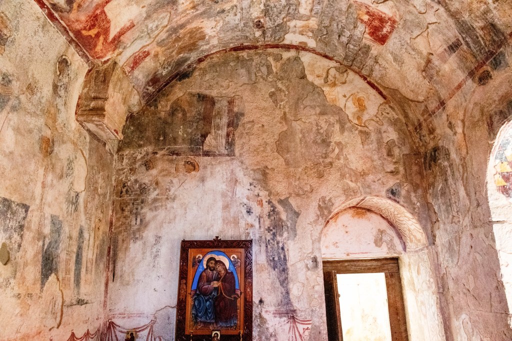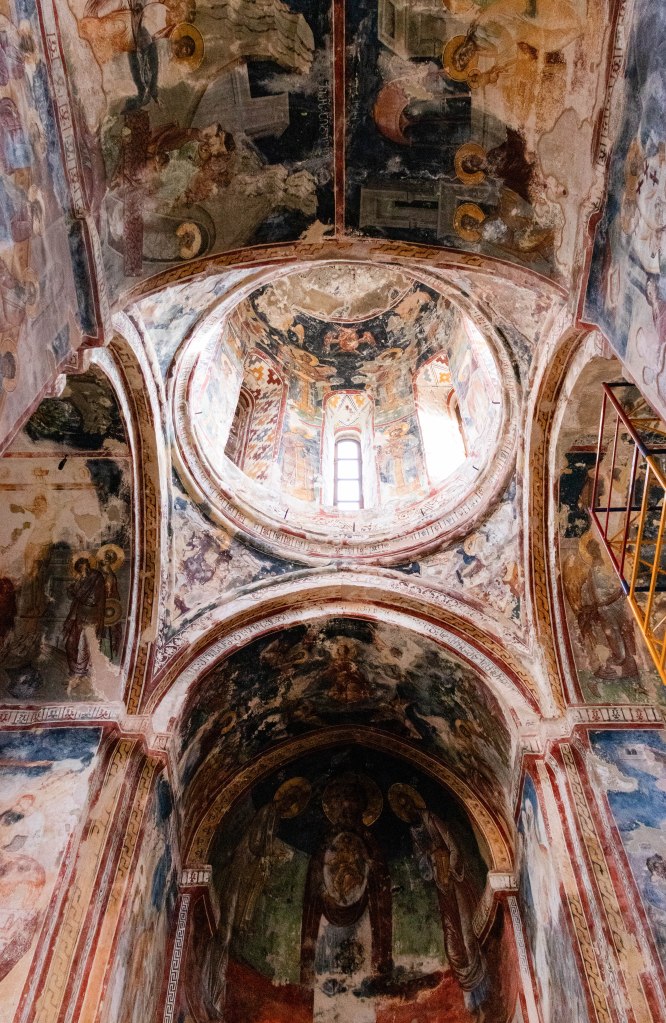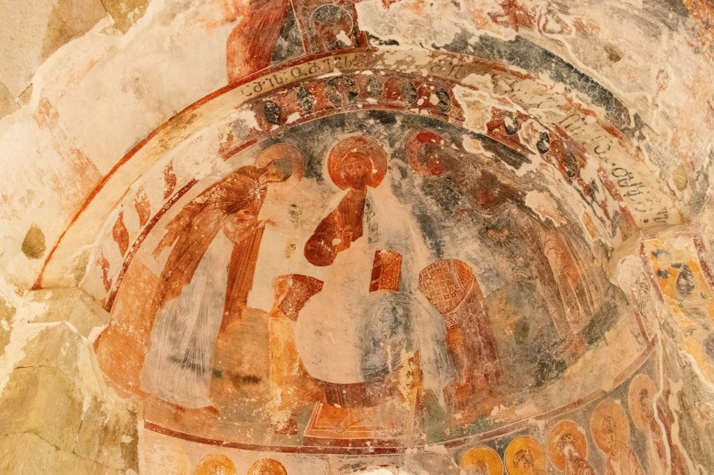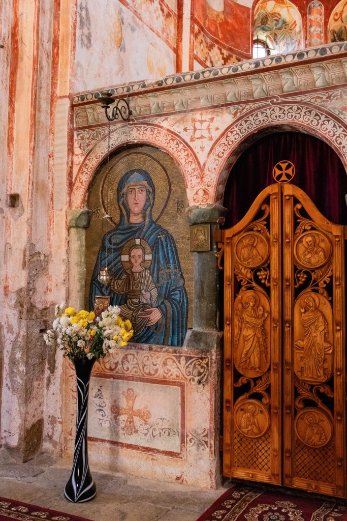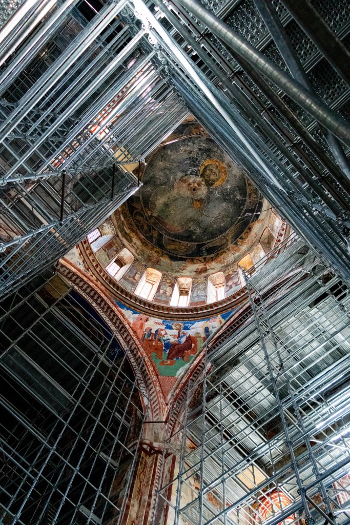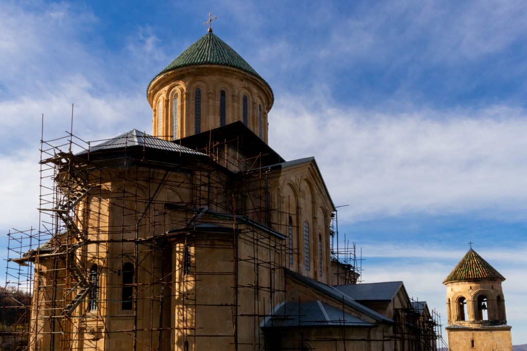 After being closed during the Soviet period in 1923, the monastery was reopened for monastic life in 1988. In 1994, the Gelati Monastery was inscribed on the UNESCO World Heritage List. However, despite its global significance, the monastery’s conservation efforts have been far from ideal. Since 2020, restoration efforts have focused primarily on preserving the murals in the main church, with UNESCO providing advisory support. However, disagreements between the Georgian Orthodox Church and UNESCO over restoration methods – particularly the frescoes – as well as issues related to the temporary roofing have caused significant delays.
