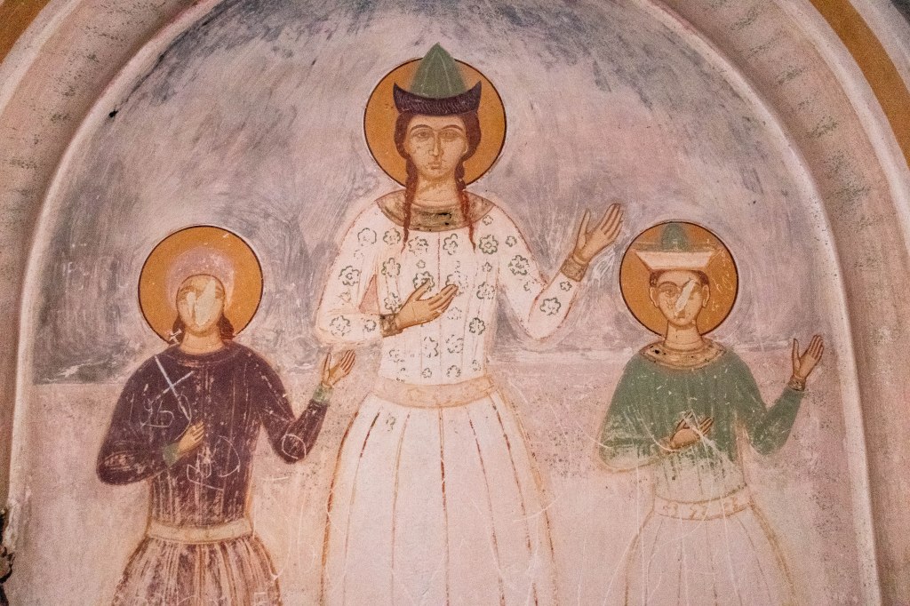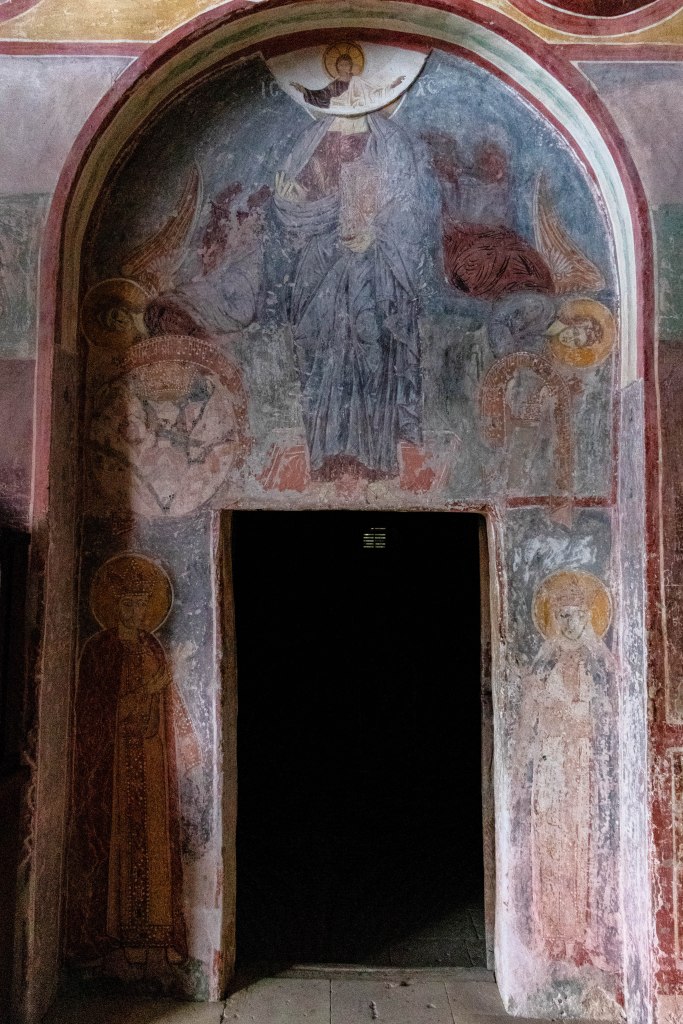 In the 13th century, additional structures were built around the main church, including the Church of St. George, the two-story Church of St. Nicholas, and a bell tower. The Church of St. George, located to the east of the main church, contains murals painted between 1565 and 1583.