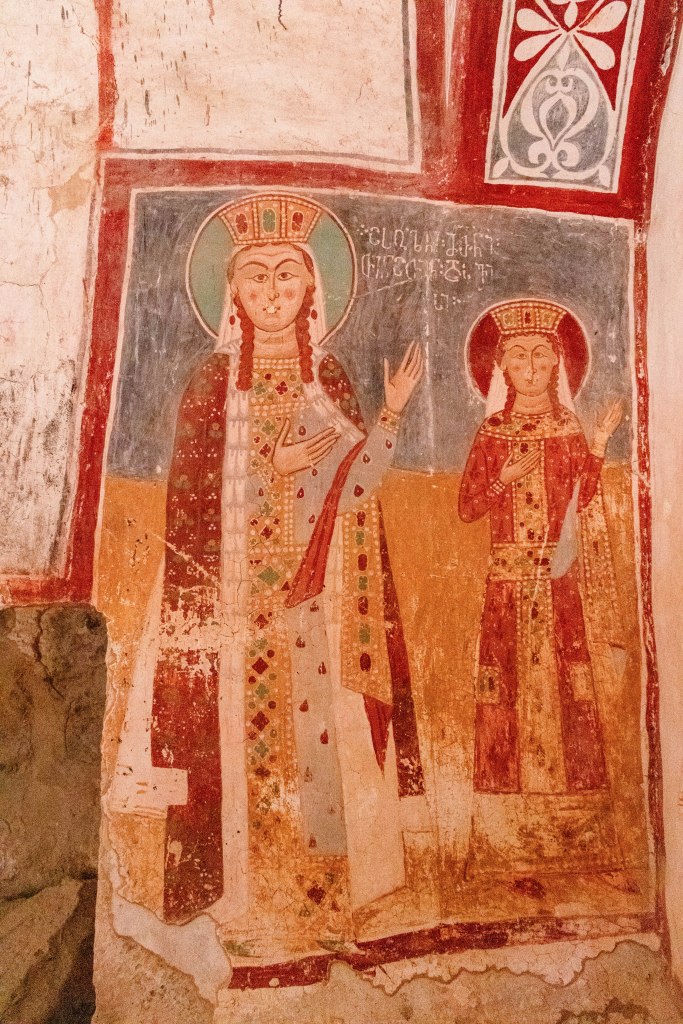 The frescoes were severely damaged during the Ottoman invasions of 1509-1510. As a result, restoration work was commissioned by the kings of Imereti, including Bagrat III (1510-1565) and George II (1565-1583). This marked a major period of repair and decoration, which is why most of the murals date from the 16th century. Painting continued into the 17th century, with murals on the lower part of the western arm and in the northeast and northwest chapels.