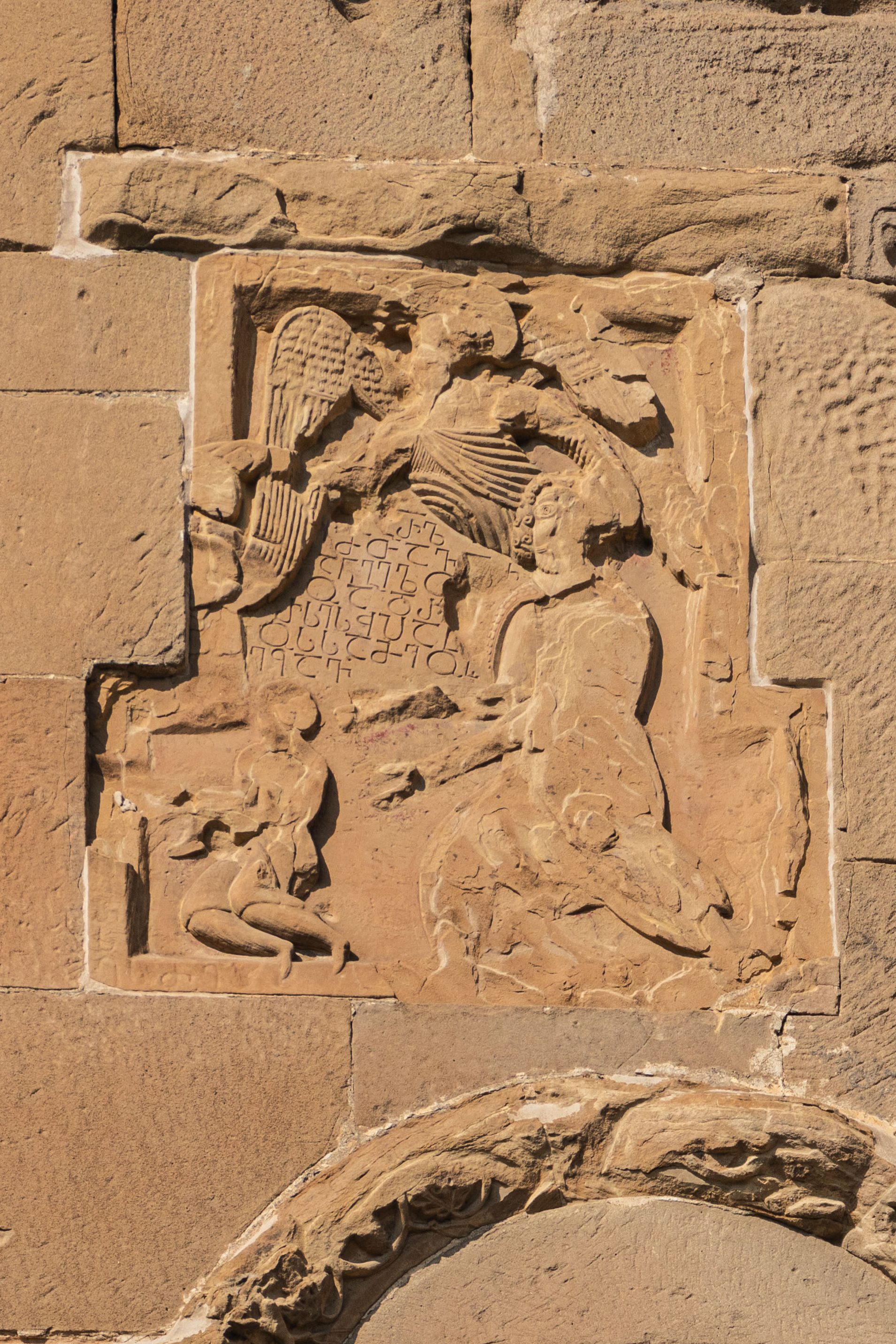Above the main entrance, on the southern facade, there is a relief with Kobul-Stephanos kneeling before St. Stephen.