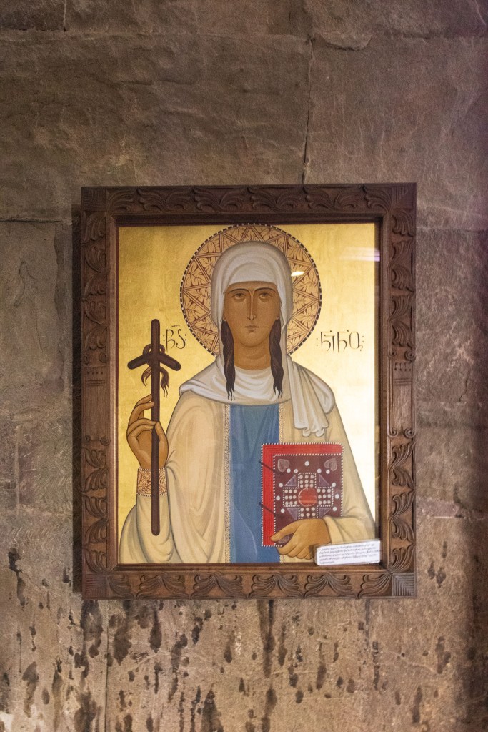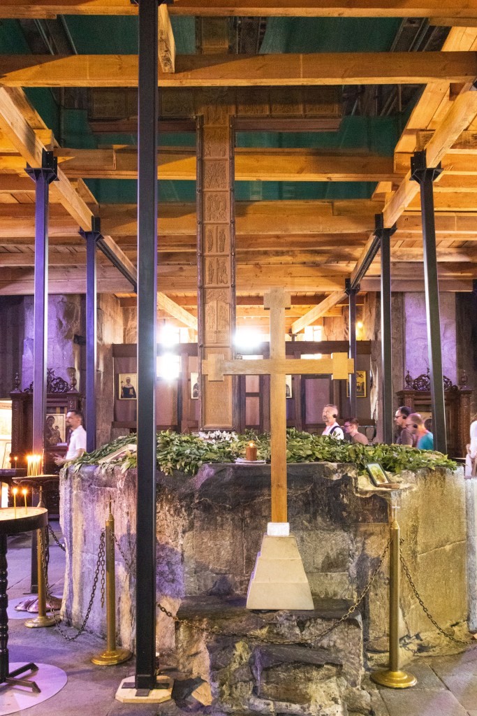 Inside the church there is no decoration. However, there is an octagonal base for a large cross, which serves as a reminder of the Cross of St. Nino, the focal point of the church. The original cross of St. Nino is now preserved in the former Tbilisi Cathedral, the Sioni Church in the Old Town of Tbilisi.