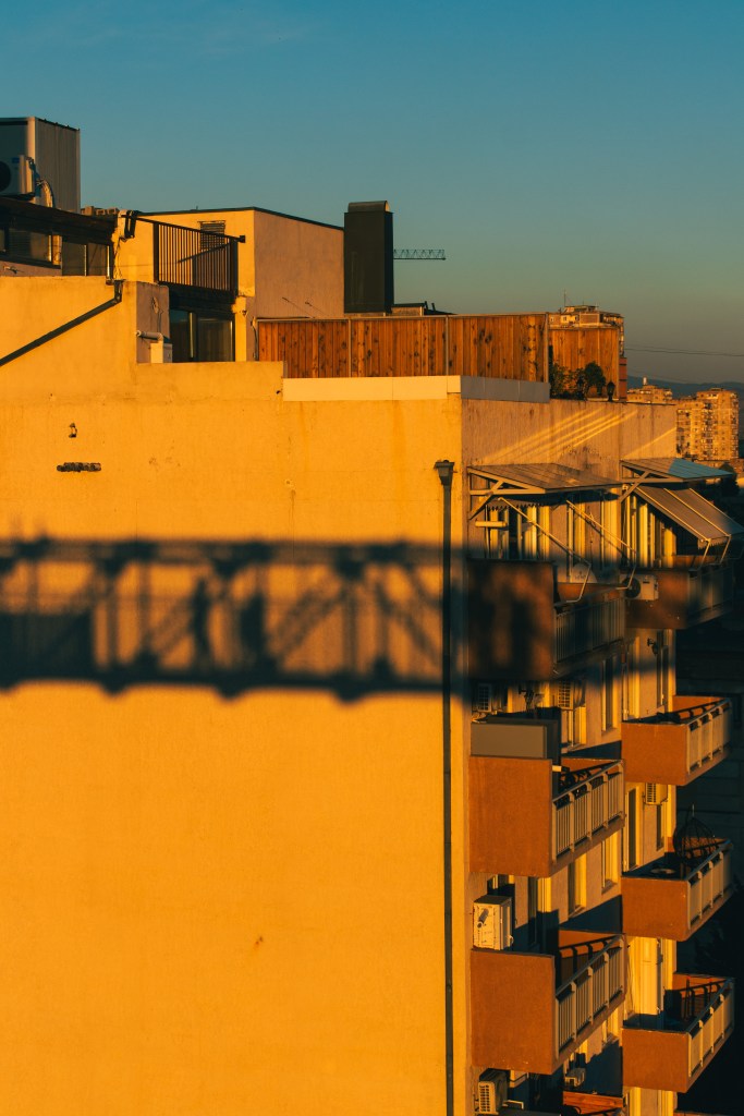 The complex is also referred to as ‘Shatili,’ likely due to the architects’ inspiration from the medieval stone towers of the village of Shatili in Khevsureti, which are similarly connected by bridges. The buildings are framed by lodges in the shape of inverted arches; in the two upper buildings, they are concrete, while in the lower one, they are wooden. Some consider this a nod to the traditional wooden balconies of Old Tbilisi. Today, many of these arched lodges have been altered by the residents: some have been bricked up entirely, while others have had windows installed.