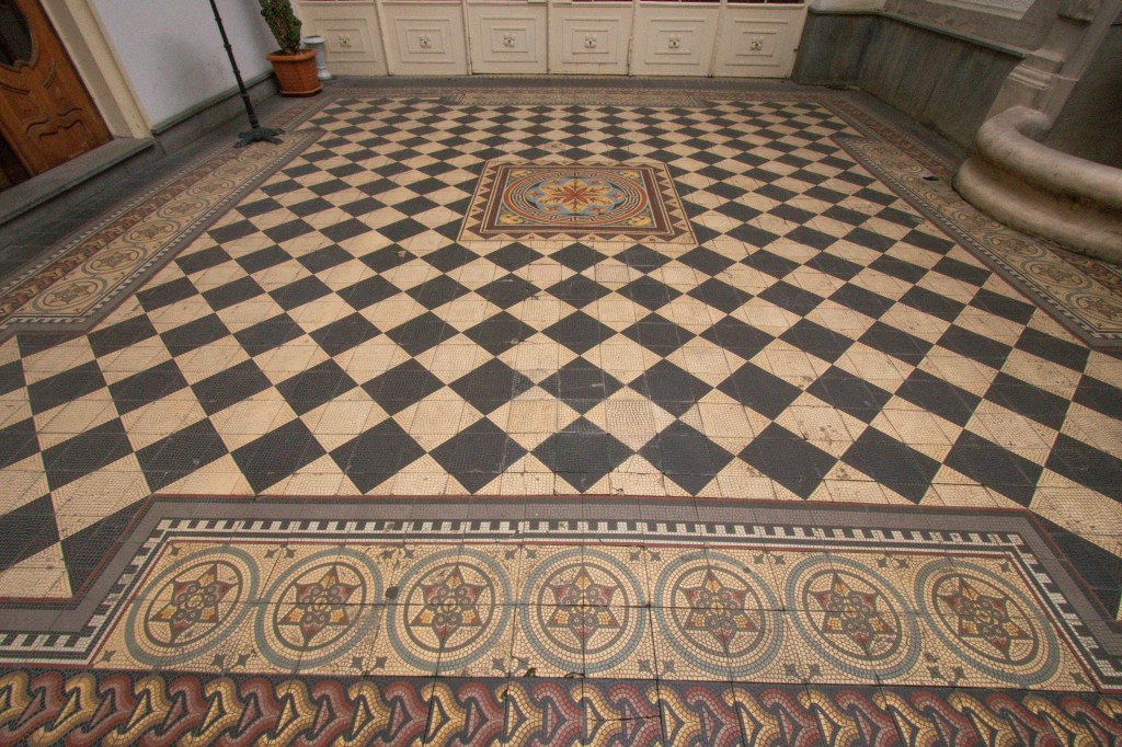 The house at 13 Ivane Machabeli Street – known as Sarajishvili’s house or the Writers’ House – condenses Sololaki’s moderni moment into one address. Built in 1903–1905 for Davit Sarajishvili (1848–1911) – chemist, entrepreneur, philanthropist and founder of spirits plants – the commission was for a single-family maison rather than a revenue house. The architect was the Berlin-trained Carl Zaar, working with Tbilisi partners Aleksander Ozerov and Korneli Tatishev. Much of the interior woodwork was executed by master joiner Ilia Mamatsashvili (1878–1966). In Tbilisi terms, the house is Art Nouveau filtered through local craft: European training and imported materials on the one hand; workshop intelligence and Georgian joinery on the other.