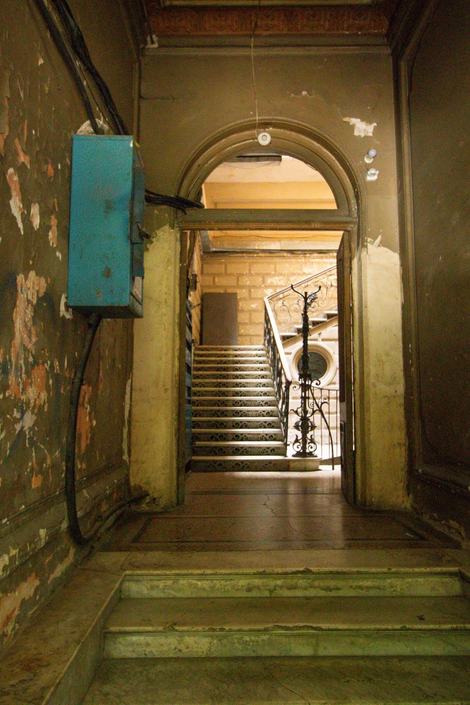 In the 1930s the originally two-storey house was raised by one storey – an early-Soviet adaptation that lifted the roofline while preserving the late-imperial order below. Now, like many other Sololaki buildings, Ter-Akopova house requires careful restoration. Geological and hydrological conditions on the slope (variable ground, moisture, drainage), together with seismic vulnerability, stress brick-and-stucco envelopes and thin lime plasters; mascarons and other sculptural details are especially susceptible to salt, vibration, and ad-hoc fixings. Fragmented ownership, dense services, and commercial pressure on ground floors further complicate coherent repair. Ter-Akopova’s house concentrates these issues in one address: a refined 19th century front, valuable entrance finishes, a later heightening – and the need for structural consolidation, materials conservation, and specialist craft to keep both facade and interior ensemble in service.