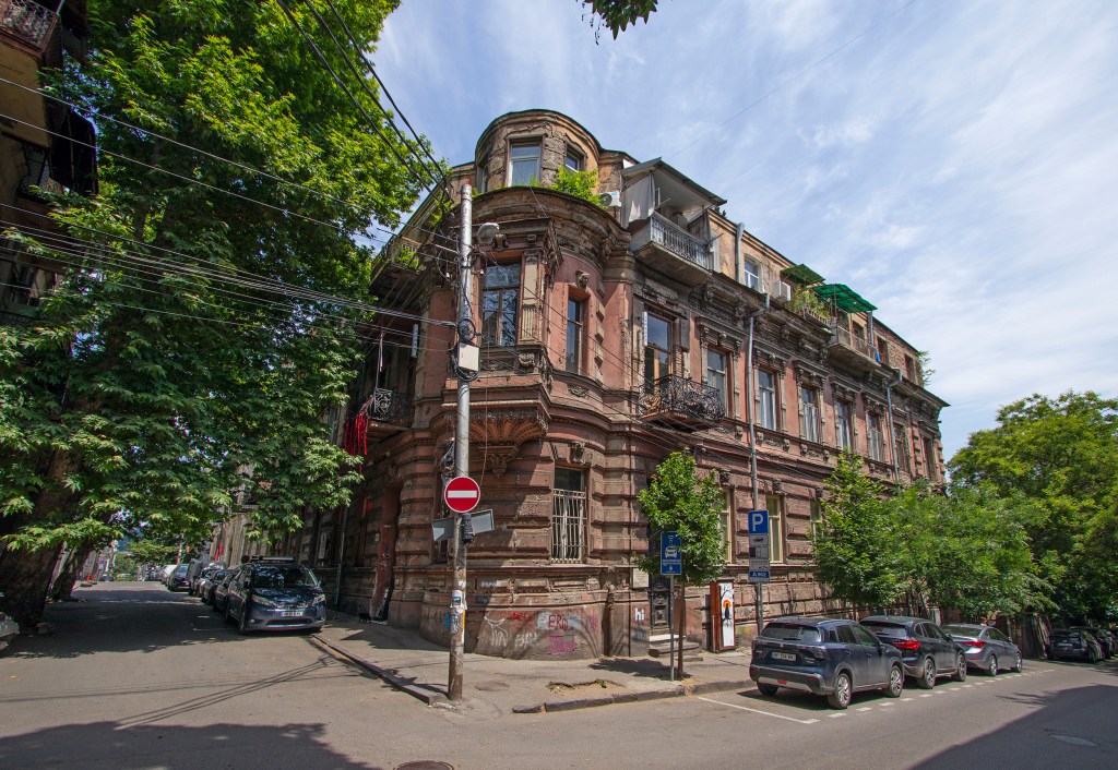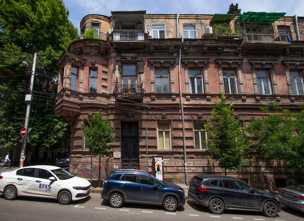 24 Galaktion Tabidze Street – known as the Ter-Akopova House – condenses the Sololaki project into a single front: an income-producing tenement with a theatrical façade. The district formed on former gardens at the foot of the ridge and was regularised in the 1860s–1890s as a rectilinear grid of party-wall masonry with shops below and flats above. By 1900 its continuous cornice lines and decorated façades read as Tbilisi’s Europeanised extension. Socially, Sololaki consolidated as a bourgeois address: revenue houses and private mansions combined late-19th/early-20th century pseudo-styles with local craft. Here public fronts end official entrance halls largely demonstrated an “European” fashion vocabulary – regular bays, stucco décor, iron balconies. A substantial Armenian mercantile stratum – well attested in travel accounts and civic records for the long nineteenth century – underwrote much of this patronage and its taste for show facades.