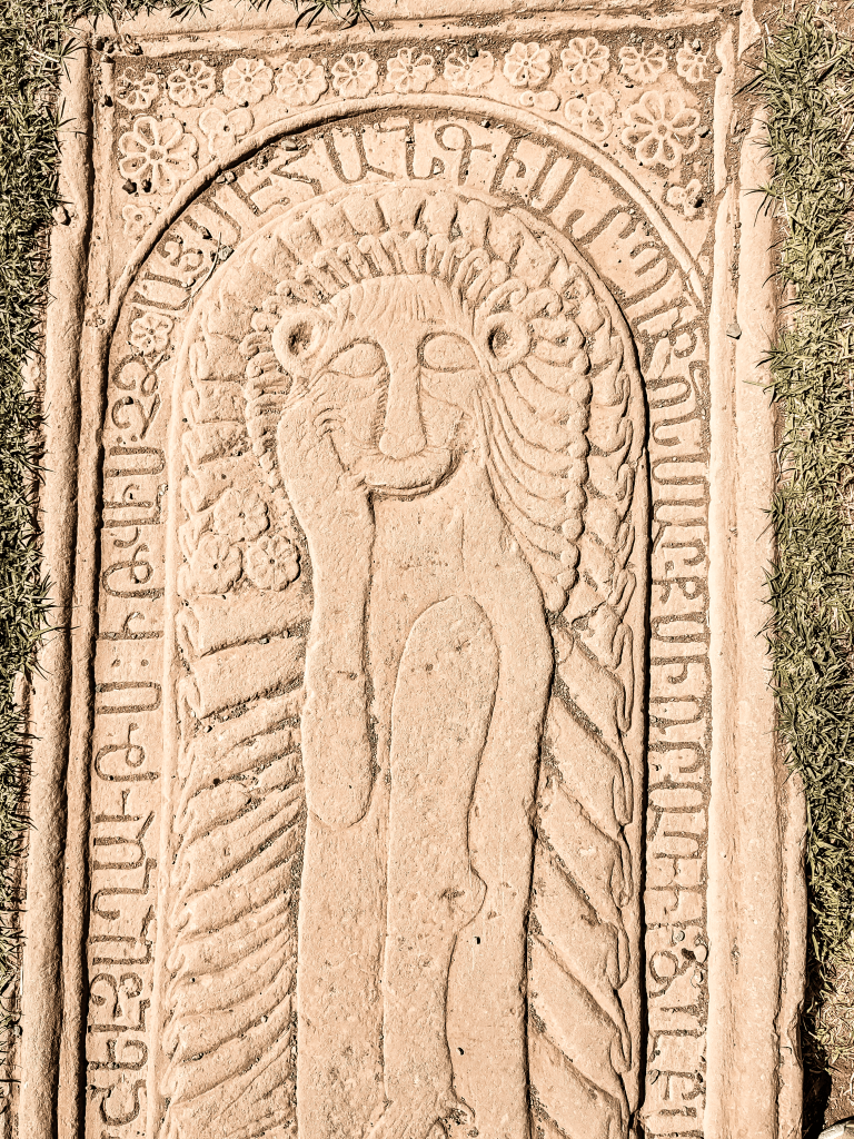relief location: a ledger stone of one of the Orbelian princes on the monastery grounds, southwest side from the St. Karapet Church Gavit